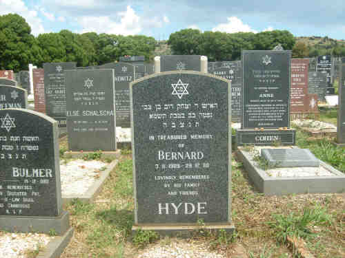 • Employment. Established a chain of gentlemen's outfitting shops in Johannesburg under the style of "Hyde Brothers". Bernard married Esther NANKIN. (Esther NANKIN was born in 1914, died on 20 Mar 1993 in Johannesburg, South Africa and was buried in JHB West Park.) |
